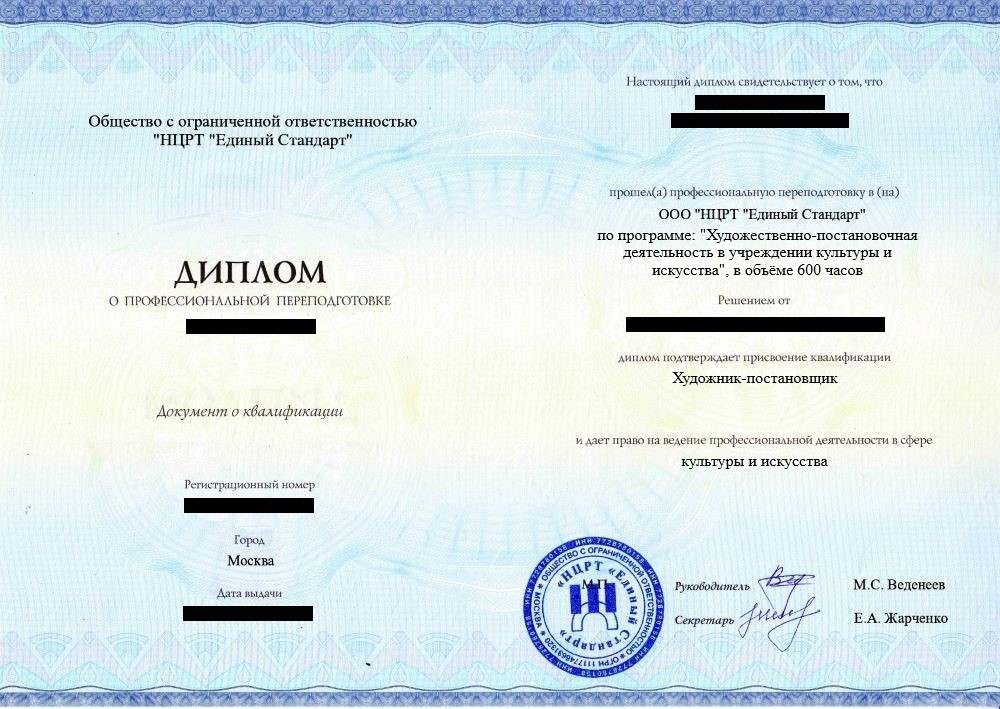 - Диплом о профессиональной переподготовке установленного образца