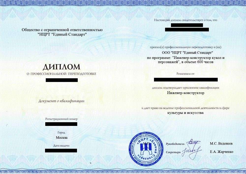 • Диплом о профессиональной переподготовке установленного государством образца. Срок действия: бессрочно